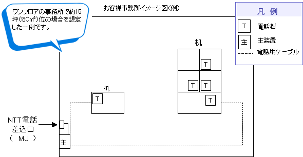 事務所がワンフロアで主装置1台・電話機5台、FAX1台利用の場合